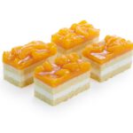 Die Sahneschnitte ist mit frischer Buttermilchsahne zwischen zwei hellen Tortenböden gefüllt und reichlich mit köstlichen Erdbeerhälften und fruchtigem Gelee bedeckt.