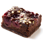 Rührteig mit Himbeeren, gefüllt mit Kaltkrem mit Pistaziengeschmack, dekoriert mit Pistazienhack.